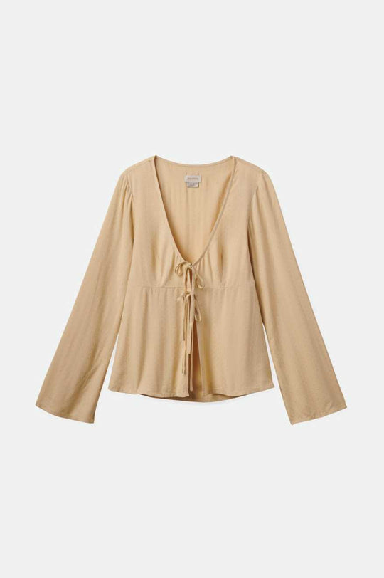 Our Vintage Blouse—our own play on a peasant top—features an open front design with cute double-tie details and slightly belled sleeves. It’s cut from lightweight jacquard dot rayon in an earthy vintage white.