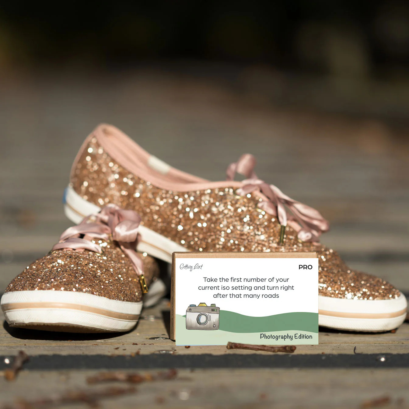 The Photography Edition of the Getting Lost Game caters to all types of photographers with "just for fun" directions on one side for those shooting on their phone and "pro" directions on the other side for those shooting with DSLR cameras with manual settings.