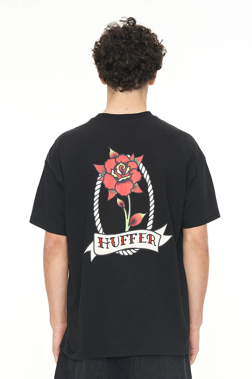 100% Cotton / 220gsm / 25mm Neck rib / Premium weight jersey / Boxy fit / Short sleeve / Huffer branded placement screenprint