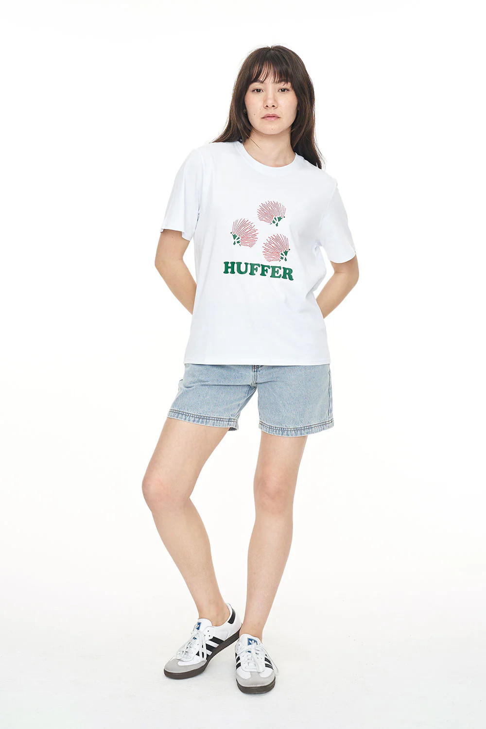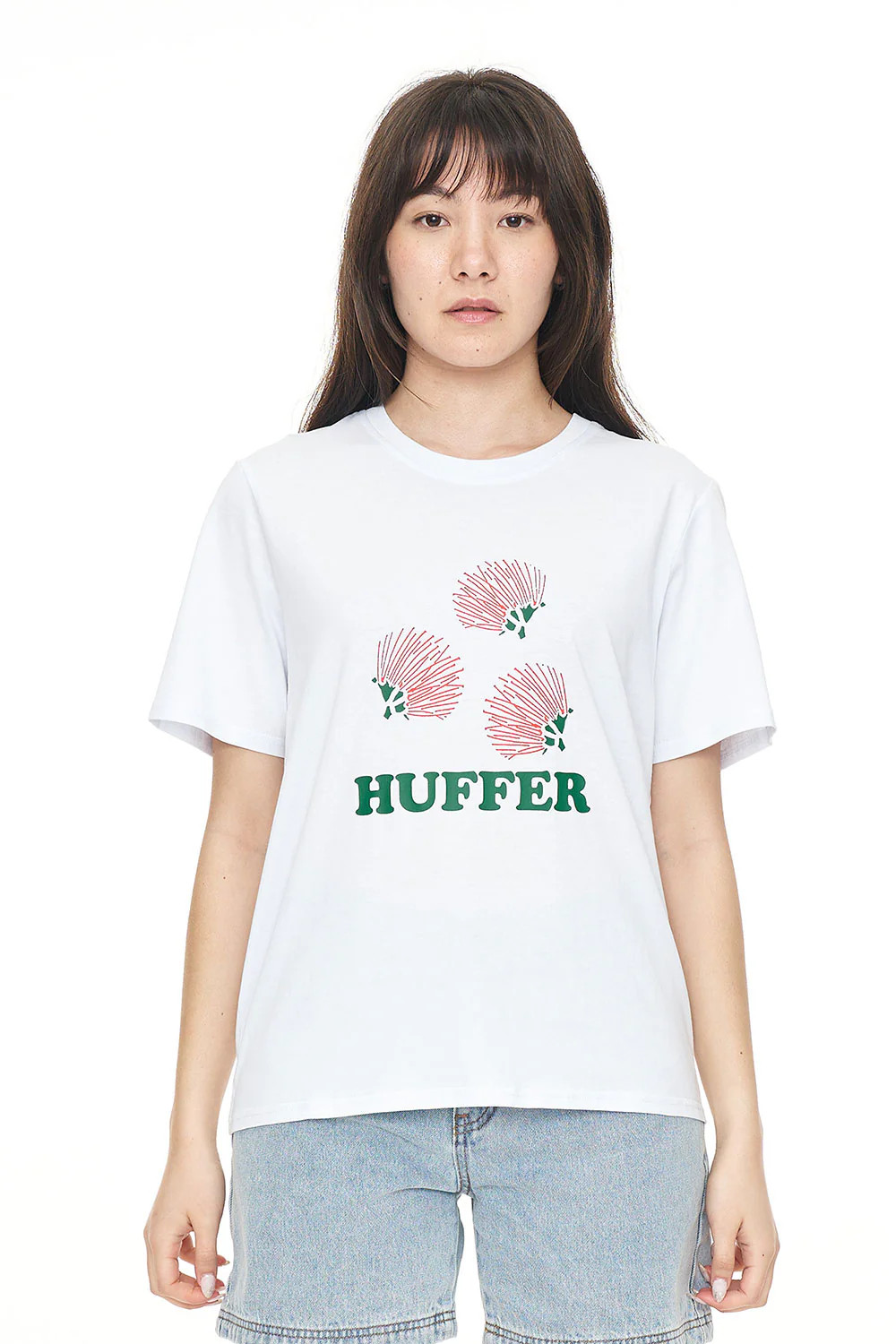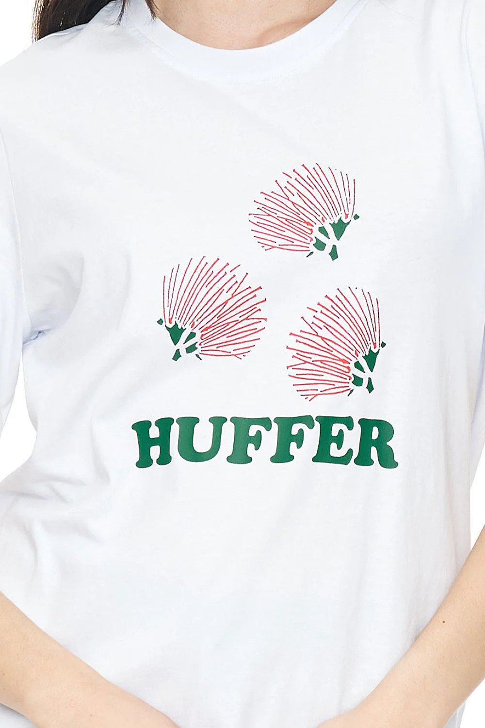 64% Cotton, 36% Polyester / 180gsm / 15mm Neck rib / Moisture wicking technical jersey / Classic fit / Short sleeve/ Custom Huffer placement print