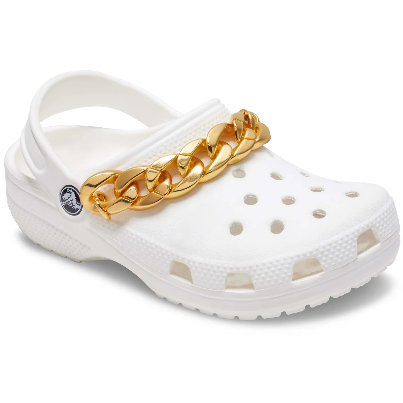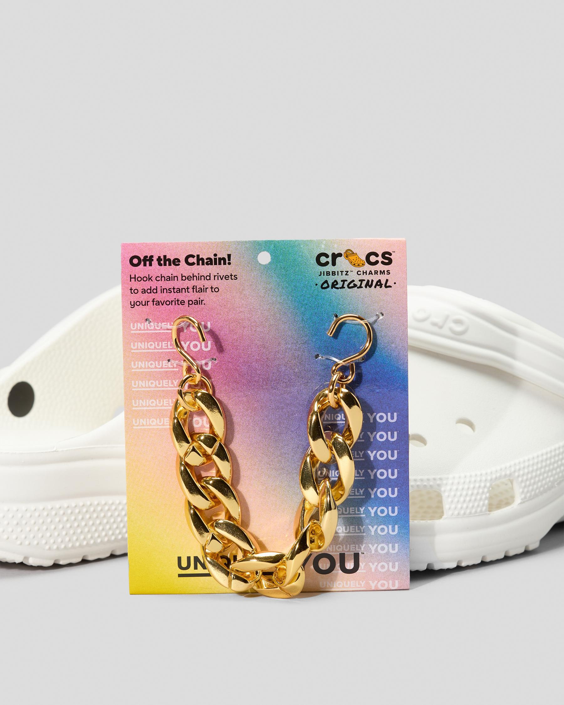 Pop some personality into your shoes with this Gold Cuban Strap Chain Jibbitz™ charm. It's the perfect addition to your favorite pairs of clogs, slides, and more.
