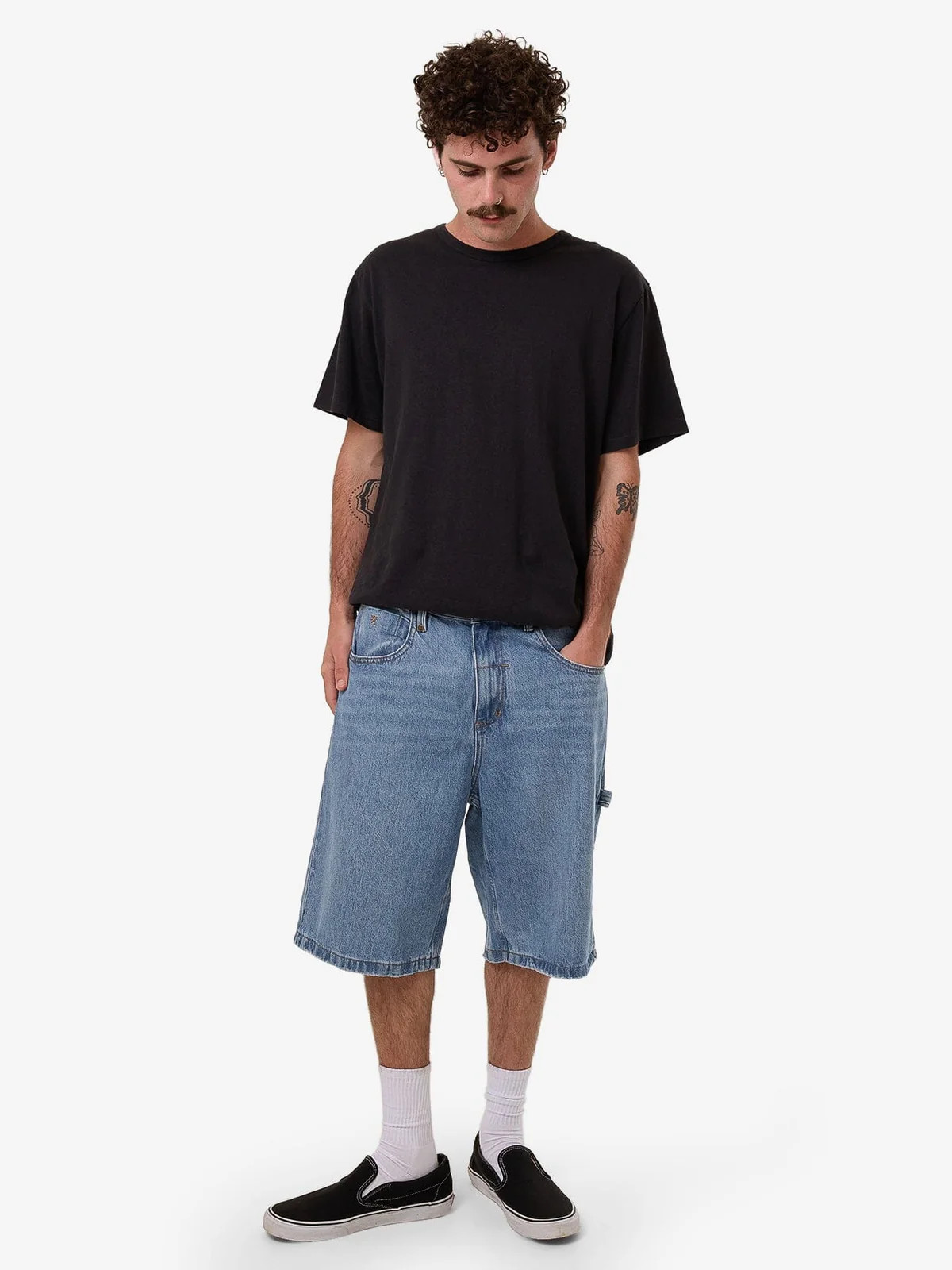 Pull off the cool and casual look with our Big Slacker Denim Short in Aged Black. Loose from hips to the wide hems with a relaxed, slouchy fit, these denim shorts for men are a staple for casual days. Superior fabrication in a versatile black colour with contrasting stitching makes styling effortless.