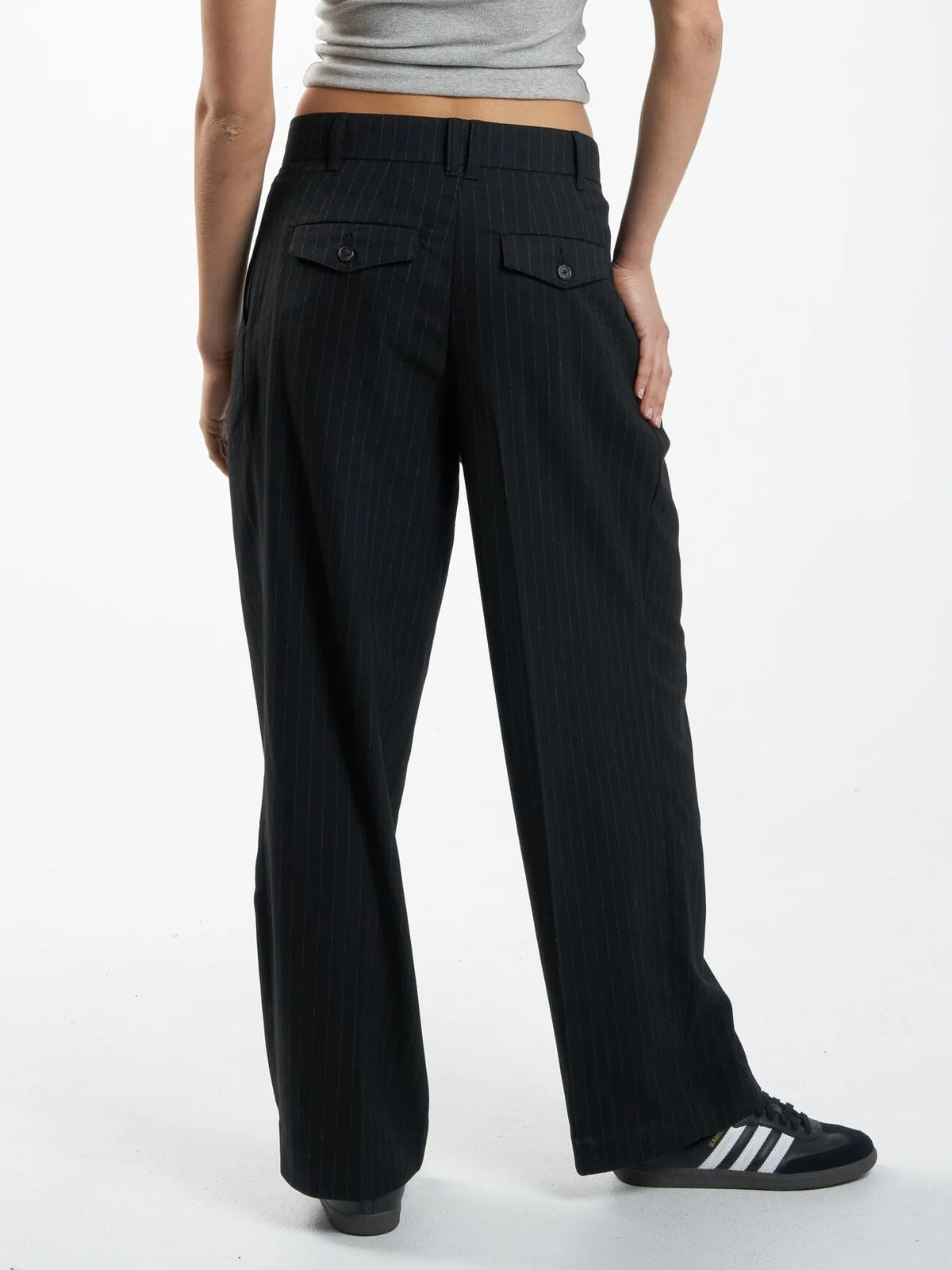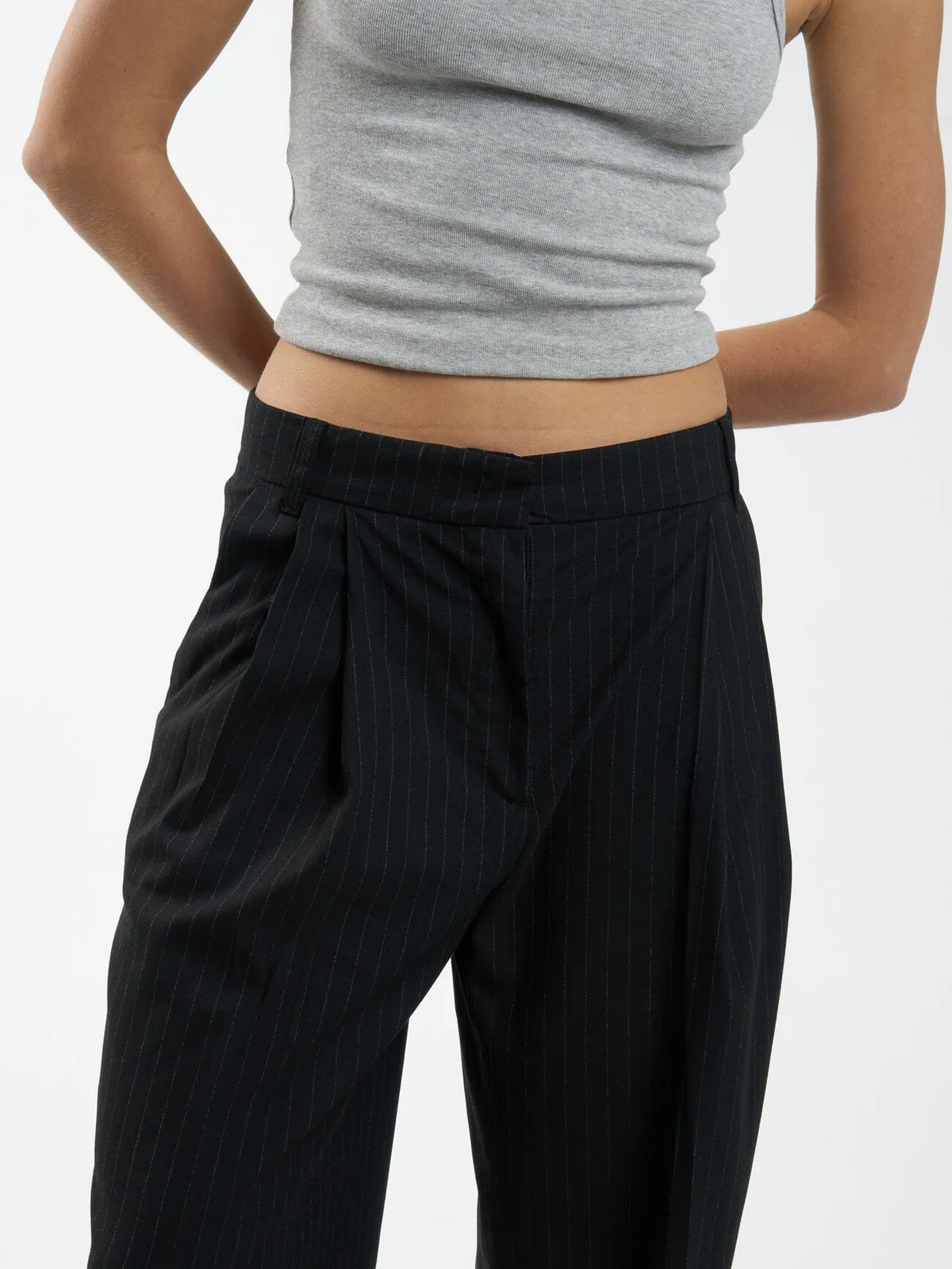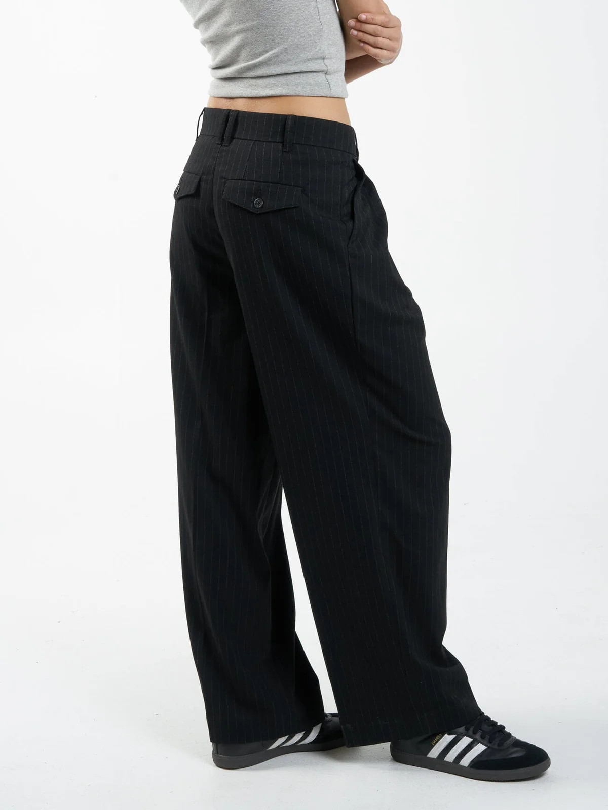 Giving the classic a much-needed upgrade, this Goivanna Trouser in Charcoal boasts an exaggerated wide-leg silhouette with a relaxed waist and an overall baggy fit for the ultimate laidback feel. Perfect for casual days or dressier settings, these ladies' trousers are crafted from crisp, comfy fabrics with 3% stretch and a pinstripe finish for a more elevated style.