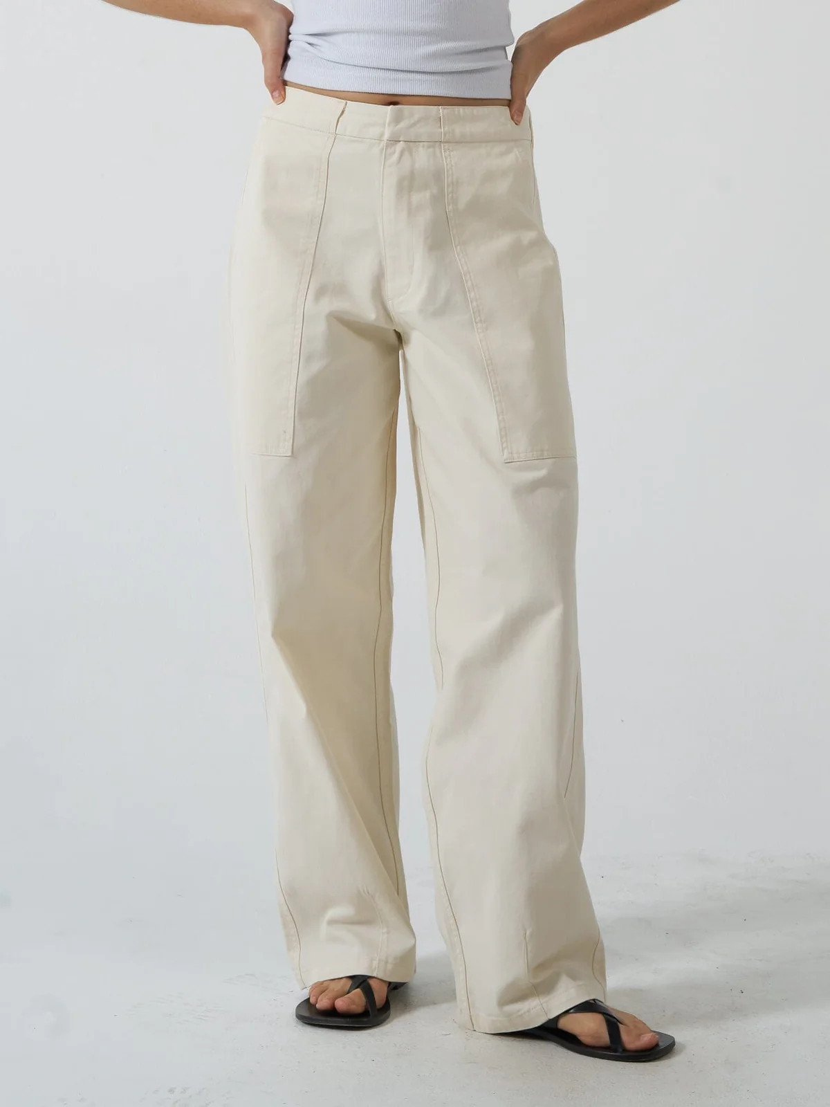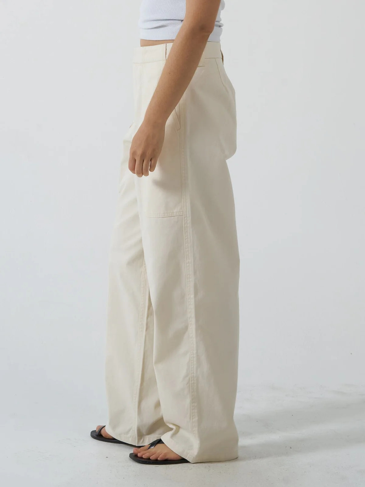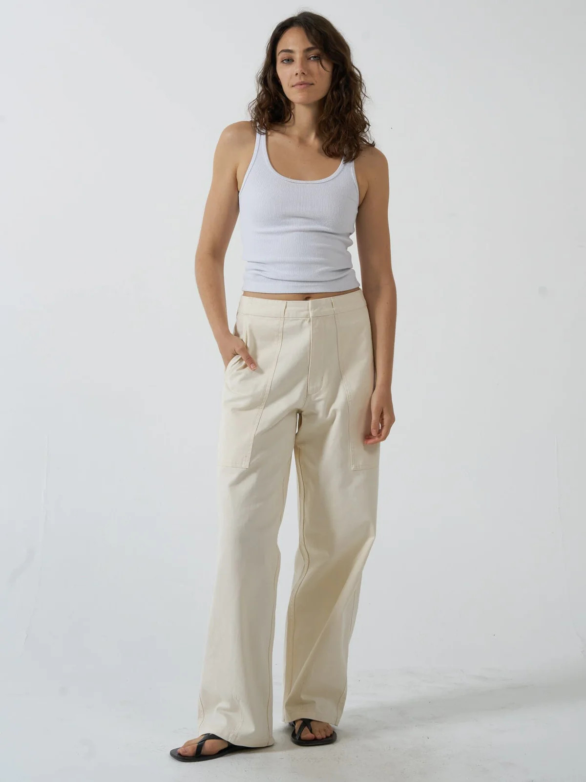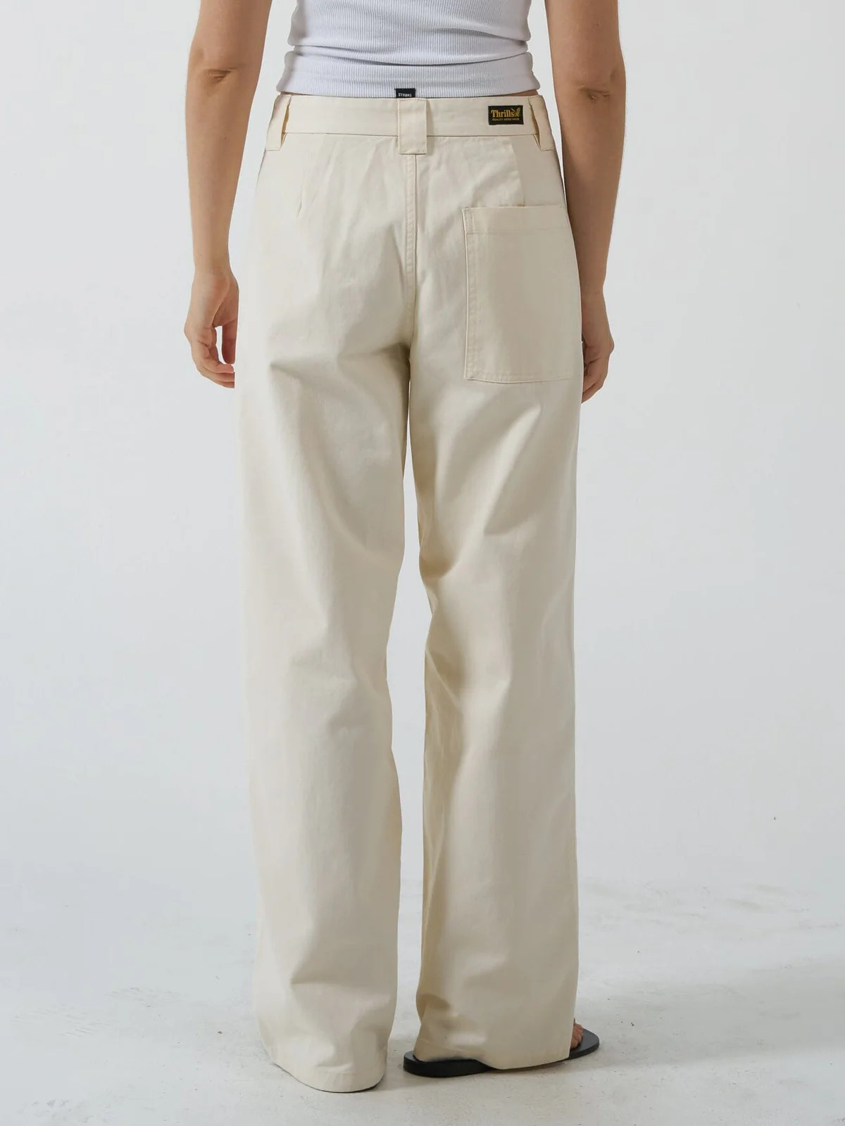 Inspired by the combination of utility and style, Thrills Mason Pant in Heritage White will take you from work to a casual night out. It is designed with a relaxed, natural waist for a comfortable fit and a solid cotton twill construction for long-lasting wear. Loose, straight legs allow unrestricted movement, while the multiple pockets add structure and functionality to the overall look. This twill pant for women is Sure to be an instant favorite for its versatility