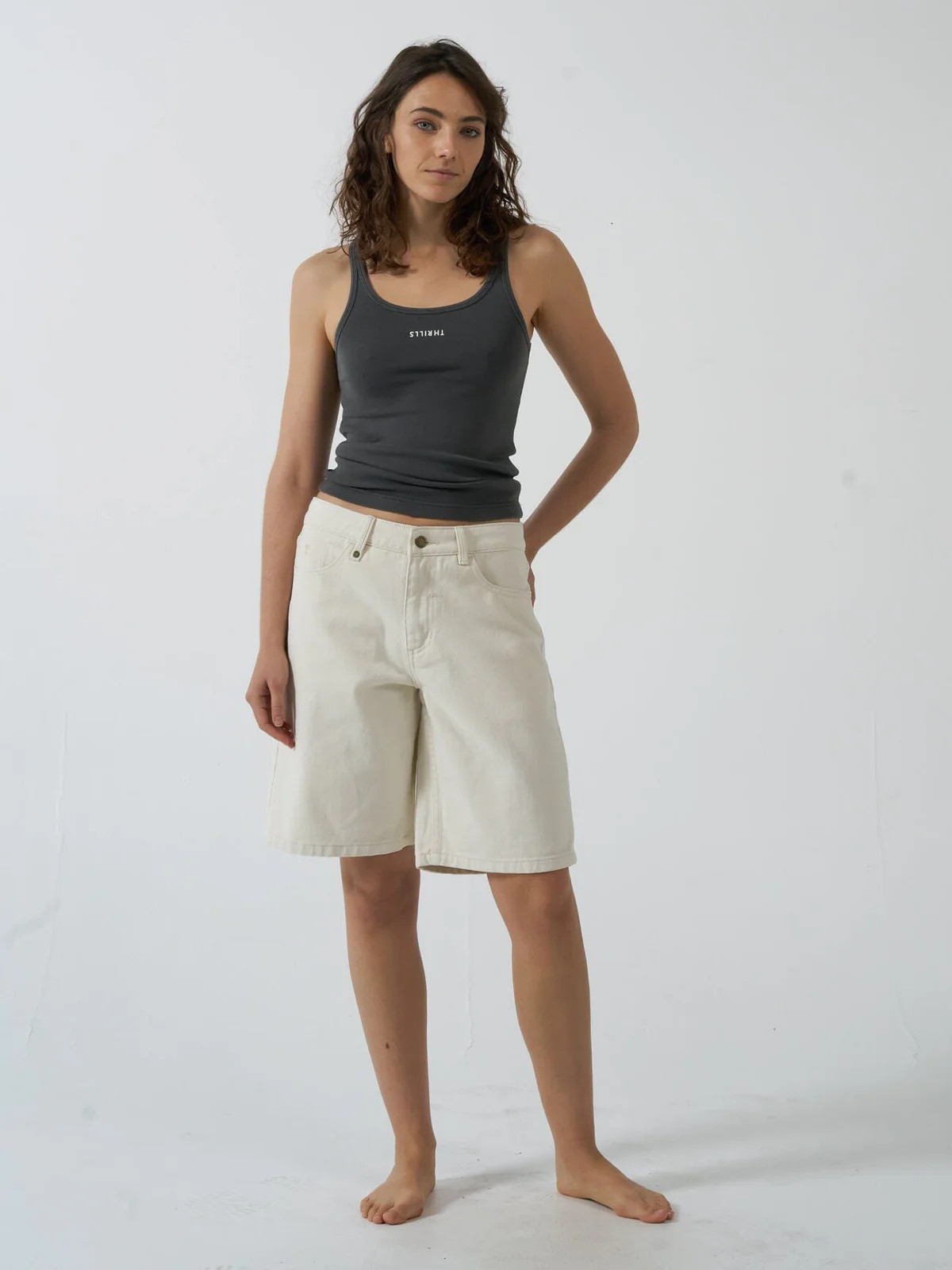 A classic that never goes out of style, the Minimal Thrills Scoop Tank is a wardrobe staple you can wear day in and day out. With its timeless scoop neck and ribbed design, this ladies' tank top offers a comfortable, casual feel you can pair with anything. They have added Thrills logo on the front for a more polished and trendier finish.